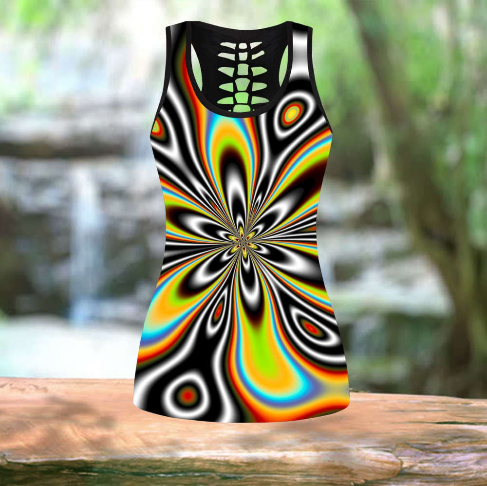 With its bold and expressive patterns, this combo set is perfect for those who embrace their unique style and love to stand out from the crowd. The leggings offer a comfortable and flexible fit, allowing you to move freely and confidently. The tank top adds a touch of effortless cool with its relaxed fit and breathable fabric.