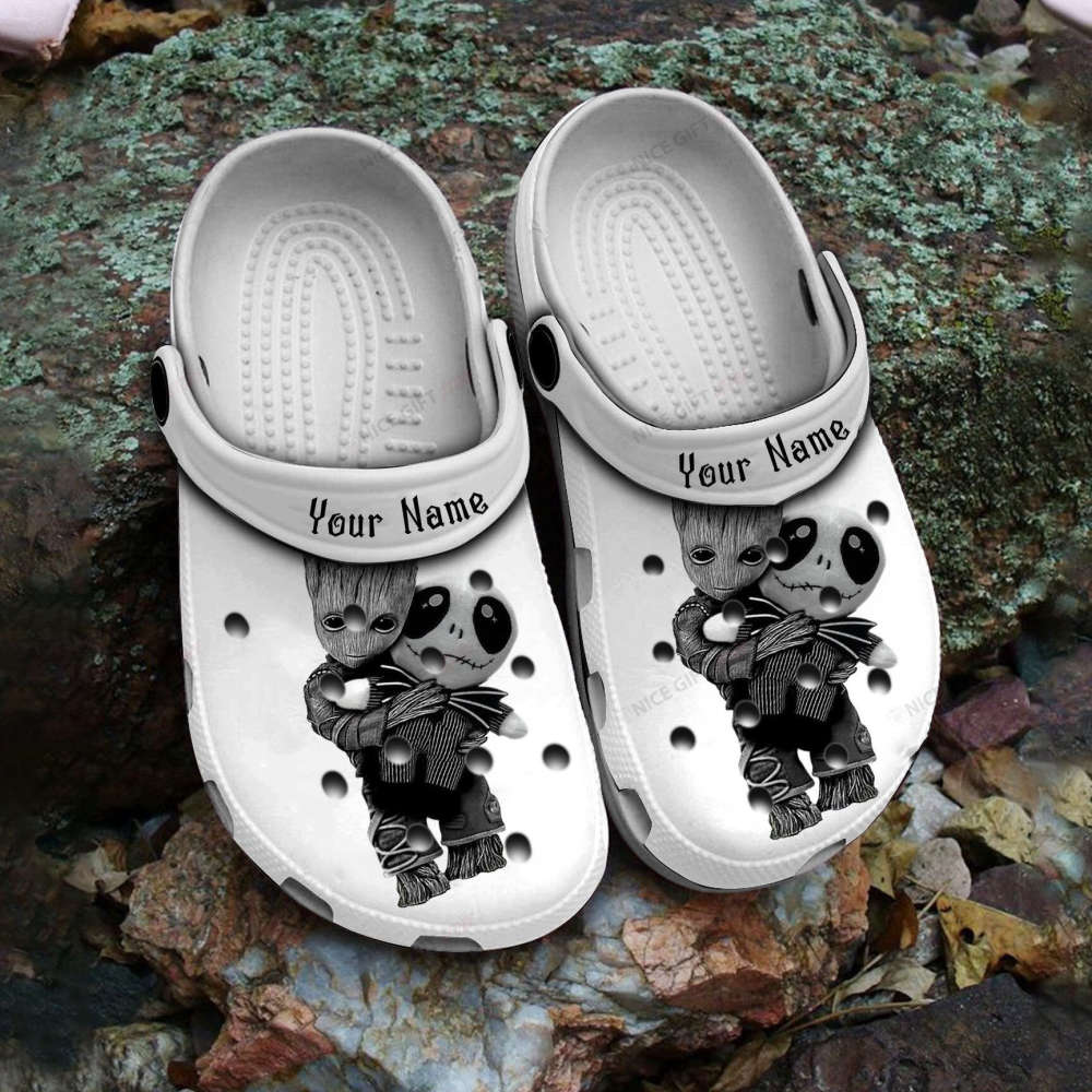 Introducing our Jack Skellington And Groot Custom Name Crocs-Slippers Shoes CRS-D5V8! These unique and eye-catching shoes are perfect for any fan of these iconic characters. Featuring a customized design with your name, these Crocs-slippers are sure to make a statement.