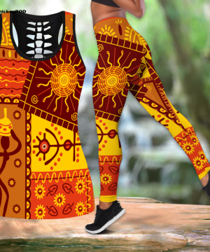 Featuring vibrant African art patterns, these leggings and tank top are meticulously crafted with premium-quality materials for ultimate comfort and durability. The leggings offer a flattering fit and are designed with a wide waistband to provide excellent support during workouts or everyday wear.