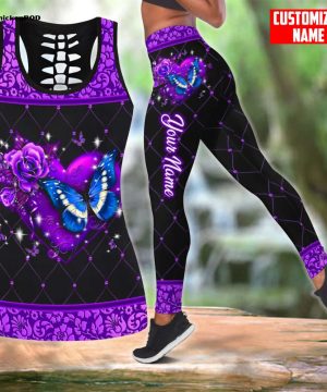 Step into the world of personalized fashion with our Personalized Name Butterfly With Heart All Over Printed Combo Legging + Tanktop and let your style soar!