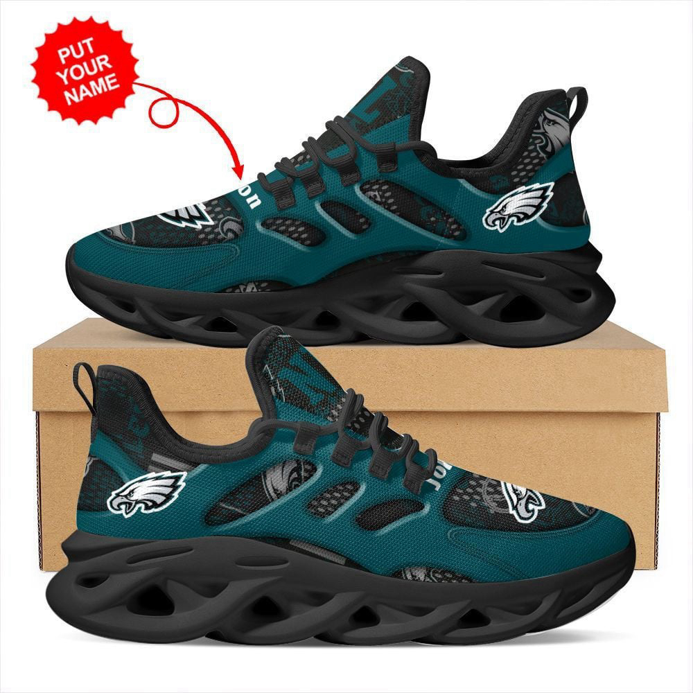 Introducing the Philadelphia Eagles Custom Name Personalized Max Soul Shoes, the ultimate footwear for die-hard fans of the legendary NFL team! Designed for both men and women, these shoes combine style, comfort, and personalization to create a one-of-a-kind fan experience.