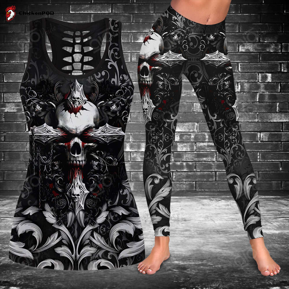 Featuring a unique 3D hollow skull cross design, this tank top or legging is perfect for those who want to make a bold statement. The intricate detailing adds a touch of mystery and allure to your outfit, making it ideal for casual outings or intense workout sessions.